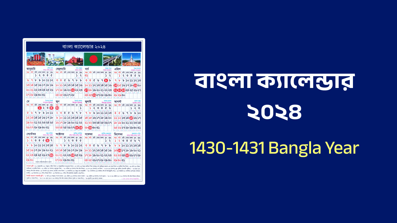 বাংলা ক্যালেন্ডার বা বঙ্গাব্দ হলো দক্ষিণ এশিয়ার বঙ্গ অঞ্চলে ব্যবহৃত একটি সৌর বর্ষপঞ্জি। বর্ষপঞ্জিটির একটি সংশোধিত সংস্করণ বাংলাদেশে জাতীয় ও সরকারি বর্ষপঞ্জি হিসেবে ব্যবহৃত হয় এবং ভারতের পশ্চিমবঙ্গ, ত্রিপুরা ও আসাম রাজ্যে বর্ষপঞ্জিটির পূর্ববর্তী সংস্করণ অনুসরণ করা হয়। বাংলা ক্যালেন্ডারটি ৫৭৬ সালের ৮ই এপ্রিল থেকে শুরু হয়, যা খ্রিস্টপূর্ব ৫৮৭ সালের ২৩শে জুলাইয়ের সাথে সামঞ্জস্যপূর্ণ। বাংলা ক্যালেন্ডারটি সৌর বছরের উপর ভিত্তি করে, যা ৩৬৫ বা ৩৬৬ দিনের সময়কালের উপর ভিত্তি করে। আজকের এই আর্টিকেলের মাধ্যমে আপনারা জানতে পারবেন ২০২৪ সালের বাংলা ক্যালেন্ডারের তারিখ ও দিন।